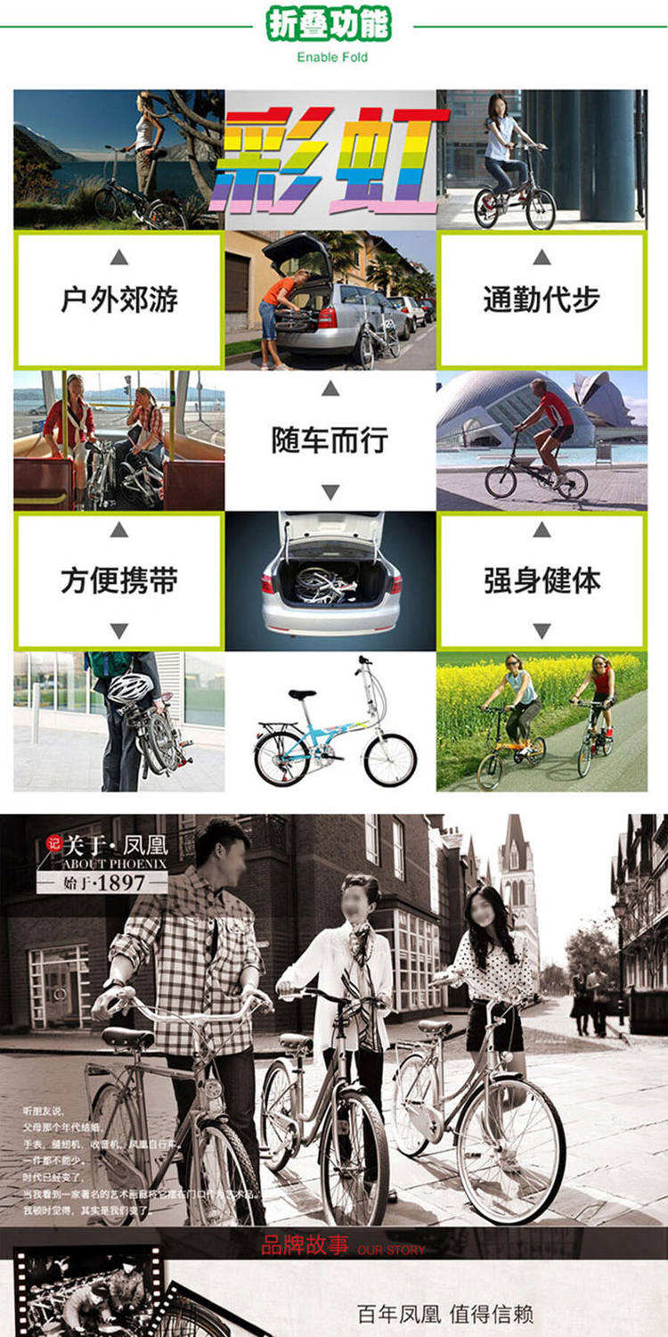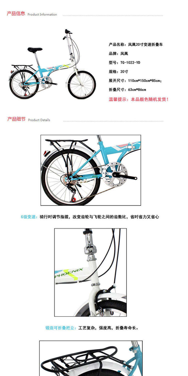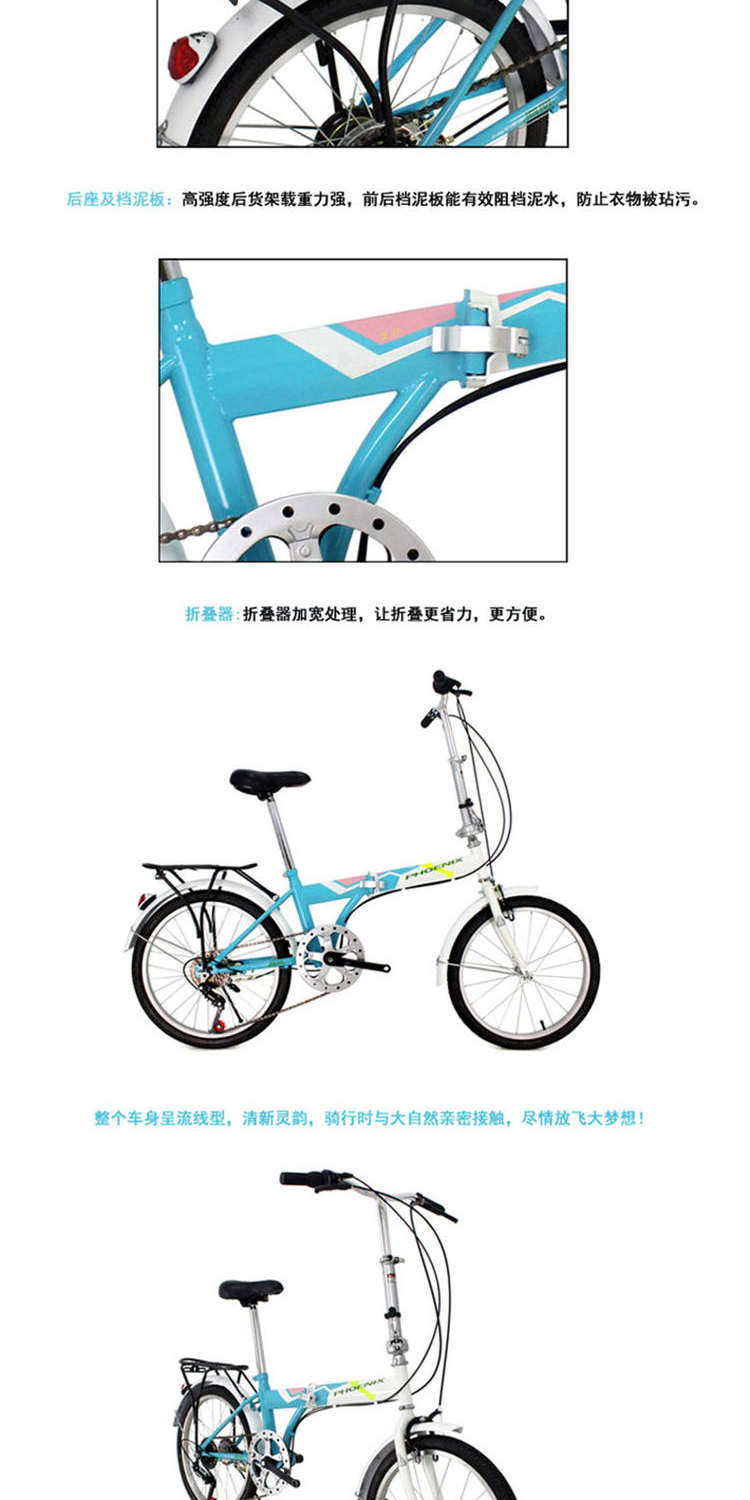 凤凰 20寸单7速折叠自行车-优雅兰 2743988